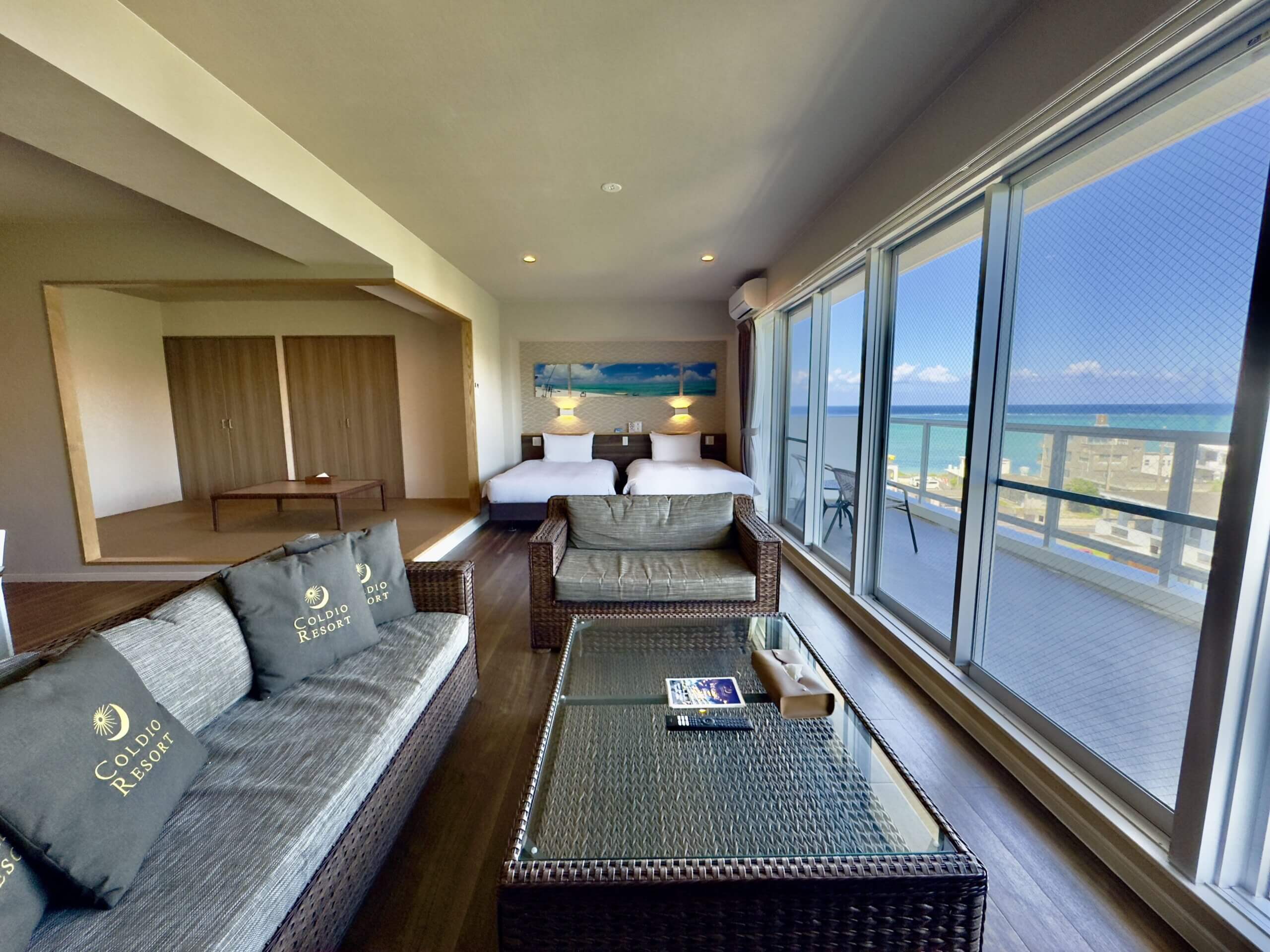 上層階角部屋のパーシャルオーシャンビュールーム。